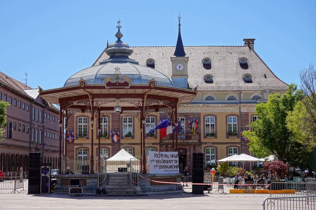 From there we went straight down to the old town. In five minutes we were in the Place d'Armes, which looked like something out of a film: terraces full (it was Friday and rush hour for French stomachs), colourful houses, an imposing town hall and even a stage being set up. They must be preparing a festival... or a medieval rave, who knows.