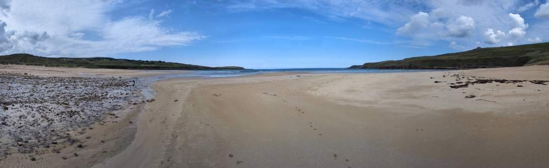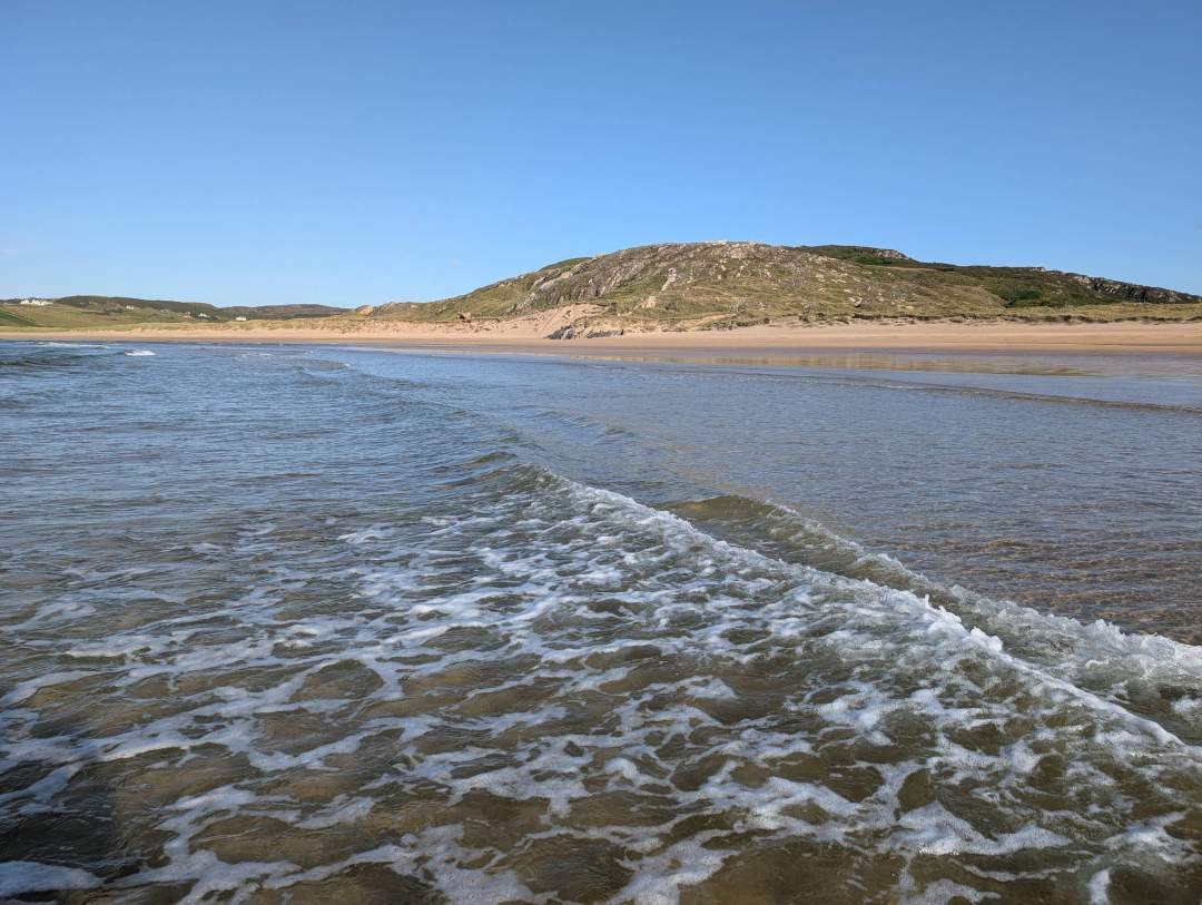 After lunch and the makeover, we went for a walk along a path that leads to Torrisdale Bay beach. It's a wide beach, with dunes, open sea and a feeling of being at the end of the world. There wasn't a soul there. We found a little corner protected from the wind, got out the towel and stayed for more than an hour sunbathing. Well, Daddy Edu sunbathed, I dedicated myself to digging holes as if I were looking for prehistoric bones. Result: Daddy covered in sand and me as happy as a lizard in the sun.