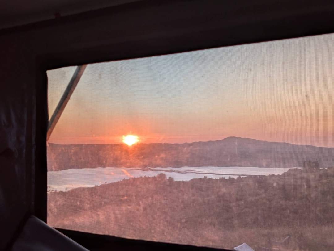 And it was a real odyssey: places that weren't what they promised, others full, others without coverage… until, finally, we found a spectacular place overlooking Tongue Bay. A large car park, close to the road but with no traffic, quiet and with a sunset that looked like it was painted by Van Gogh himself.