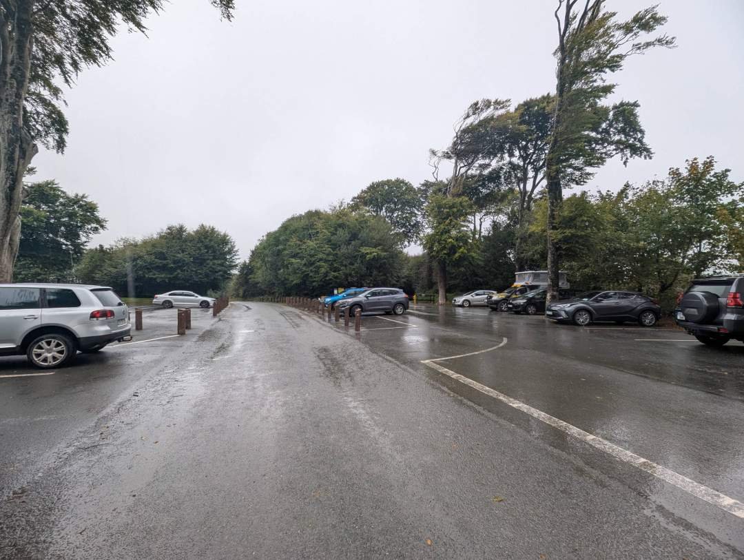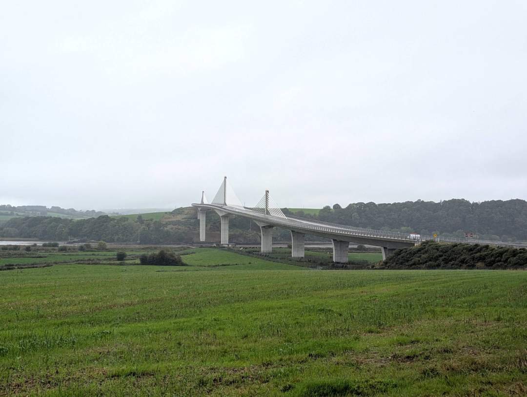 After midday, we set off by car and the weather decided it was time to get a little wet. We stopped briefly at a picnic area with a viewpoint to the Rose Fitzgerald Kennedy Bridge, the longest bridge in Ireland.