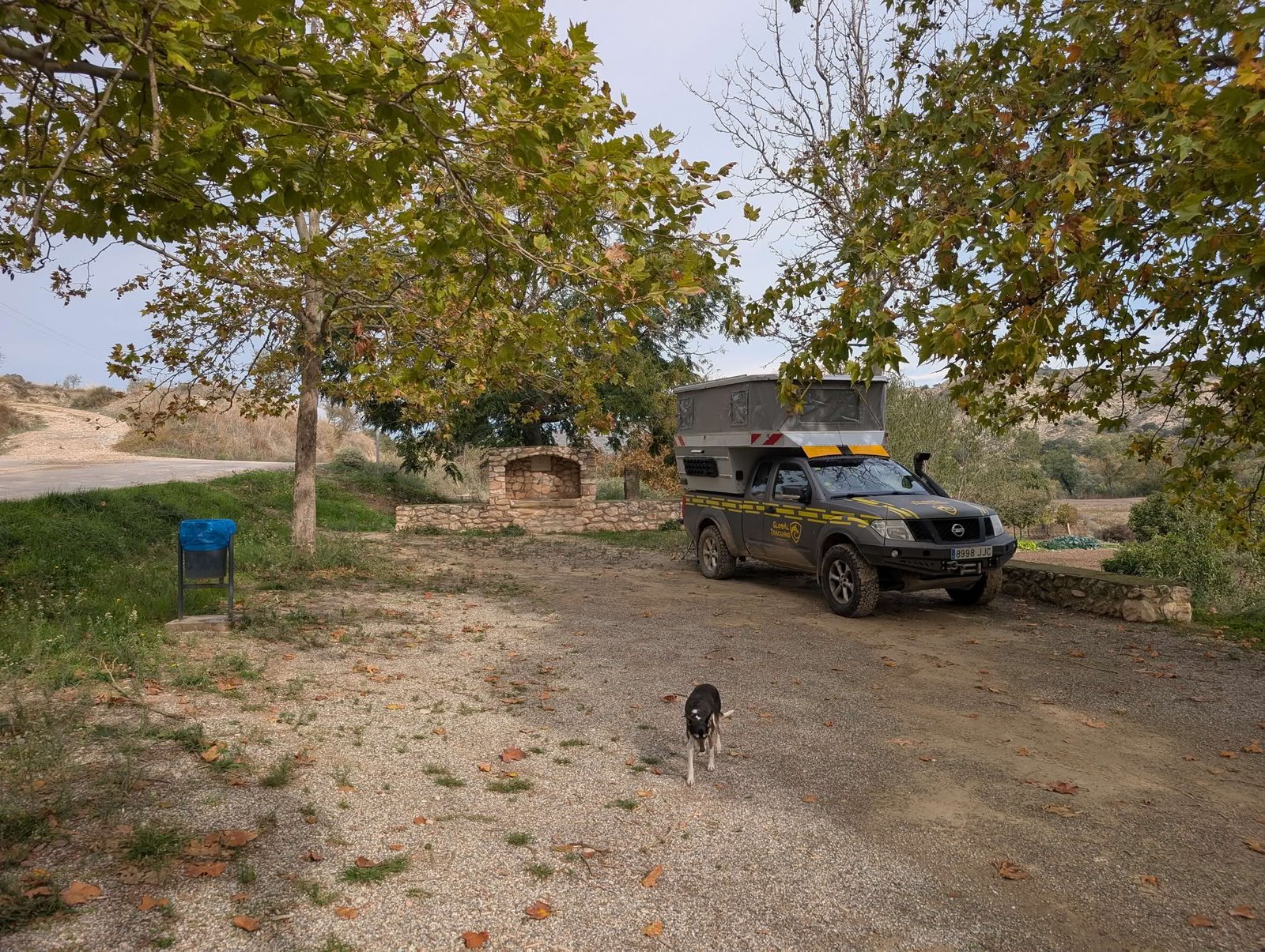 When the sun began to hide behind the mountains, we explored the surroundings of the Santa Ana dam. Between tunnels, canals and aqueducts, it looked like a labyrinth of water and stone. Very cool, although the air already smelled of cold. Dad decided to go a little further to get ahead, and in the end we found a picnic area in Castelló de Farfanya.