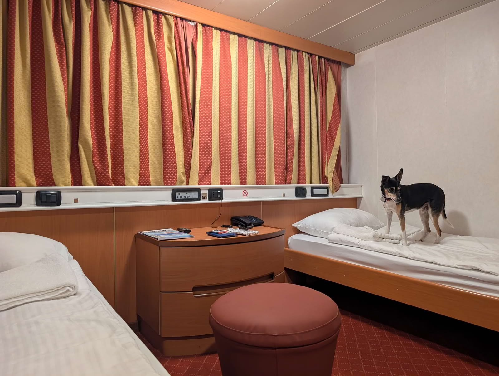 Aquí también puedo dormir en el camarote y hasta tengo cama propia, que hay dos. Nivel alto. Lo único que no hemos encontrado todavía es el pipicán. Espero que exista, porque si no, voy a tener que ponerme creativo… y eso nunca acaba bien para nadie.