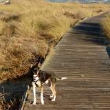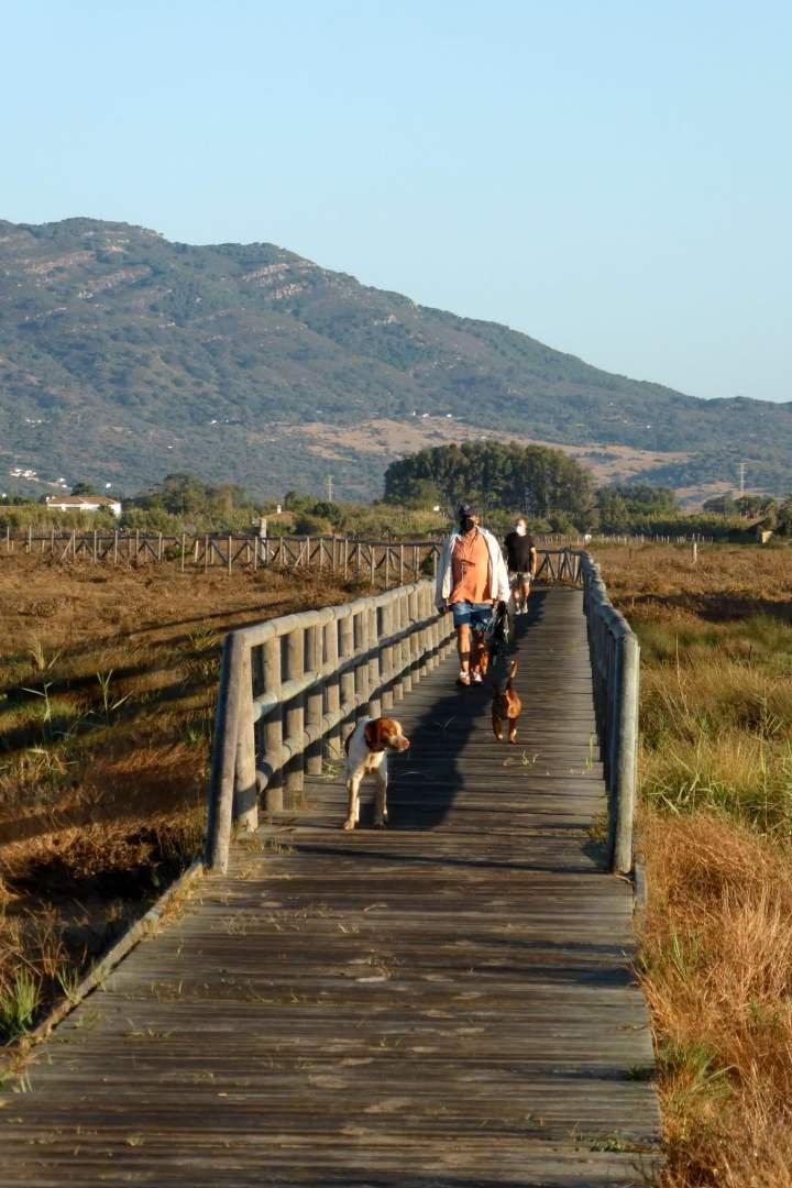 Salimos temprano, sobre las ocho y media, desde el hostal en Tarifa. Yo ya soñaba con correr por la playa como en las pelis, pero nada, todo el rato por un camino de madera al ladito. Bonito sí, pero mi instinto de perro playero quedó un poco frustrado.