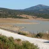El embalse que pasamos, meh, no era muy fotogénico. En el valle, en cambio, el viento era tan fuerte que casi me convertí en un perricóptero. Claro, con tantos ventiladores gigantes (esos molinos blancos que giran y giran), no me sorprende.