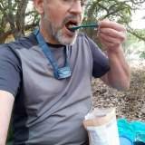 En el Puerto de Ojén alcanzamos el punto más alto. Hay un mirador, pero no os emocionéis mucho, porque no había gran cosa que ver. Desde ahí empezamos a buscar dónde pasar la noche. Papi montó la tienda en un bosque sin vacas, cerca de la carretera pero bien escondidos. La tienda tiene un color camuflaje total, ¡ni un águila nos ve!