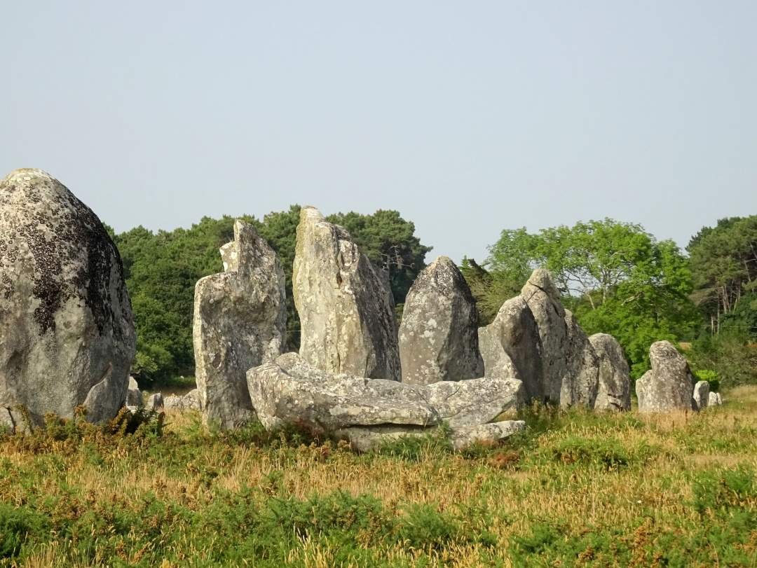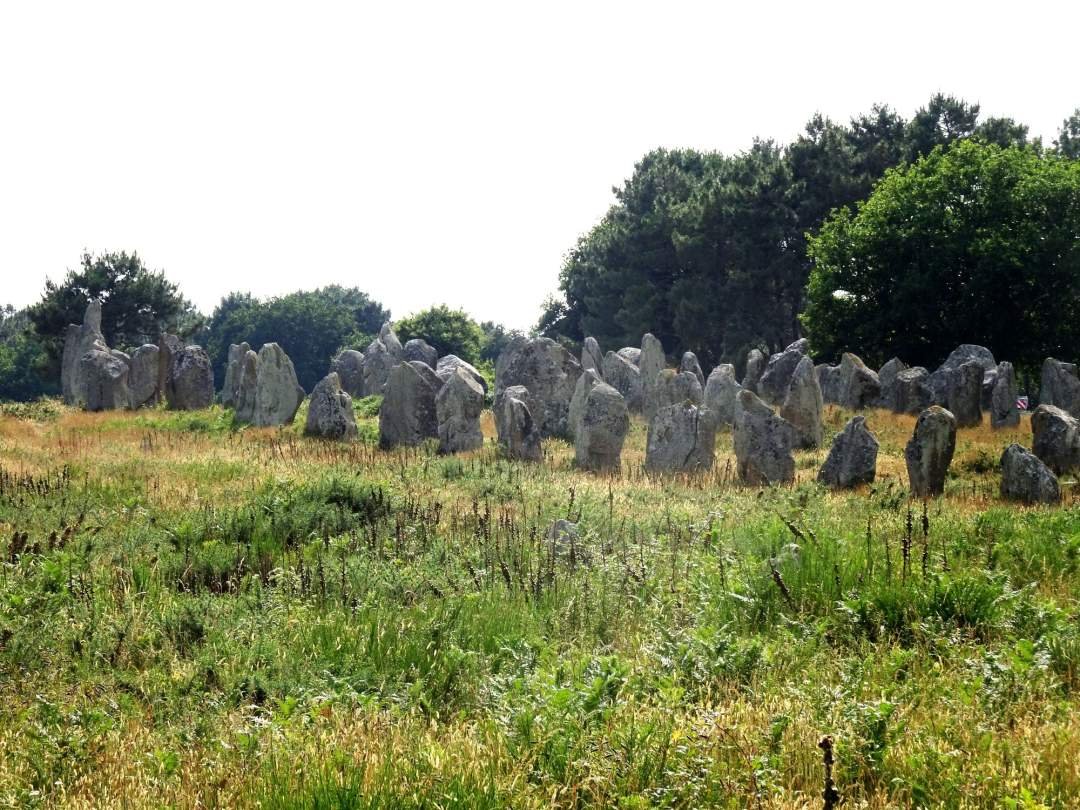 Cuando el sol picaba un poco menos nos fuimos a un sitio curioso ❷ donde hace muchos años alguien se molestó en colocar las piedras grandes. Son tan grandes que ahora, miles de años después, todavía siguen en lineas más o menos rectas. También caminamos a un menhir (como el de Obelix) muy muy grande. Mira la foto, parecemos enanos. Una mujer nos preguntó en francés si también sentimos una energía especial, pero yo solo sentía muchísimo calor.