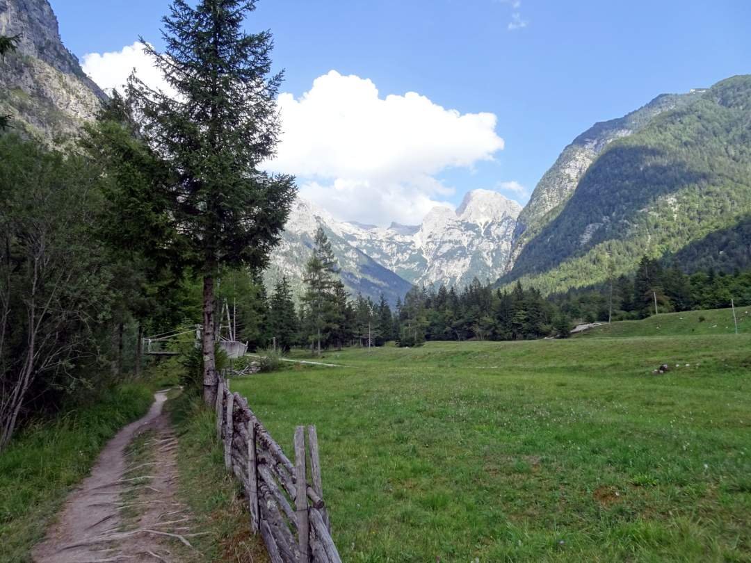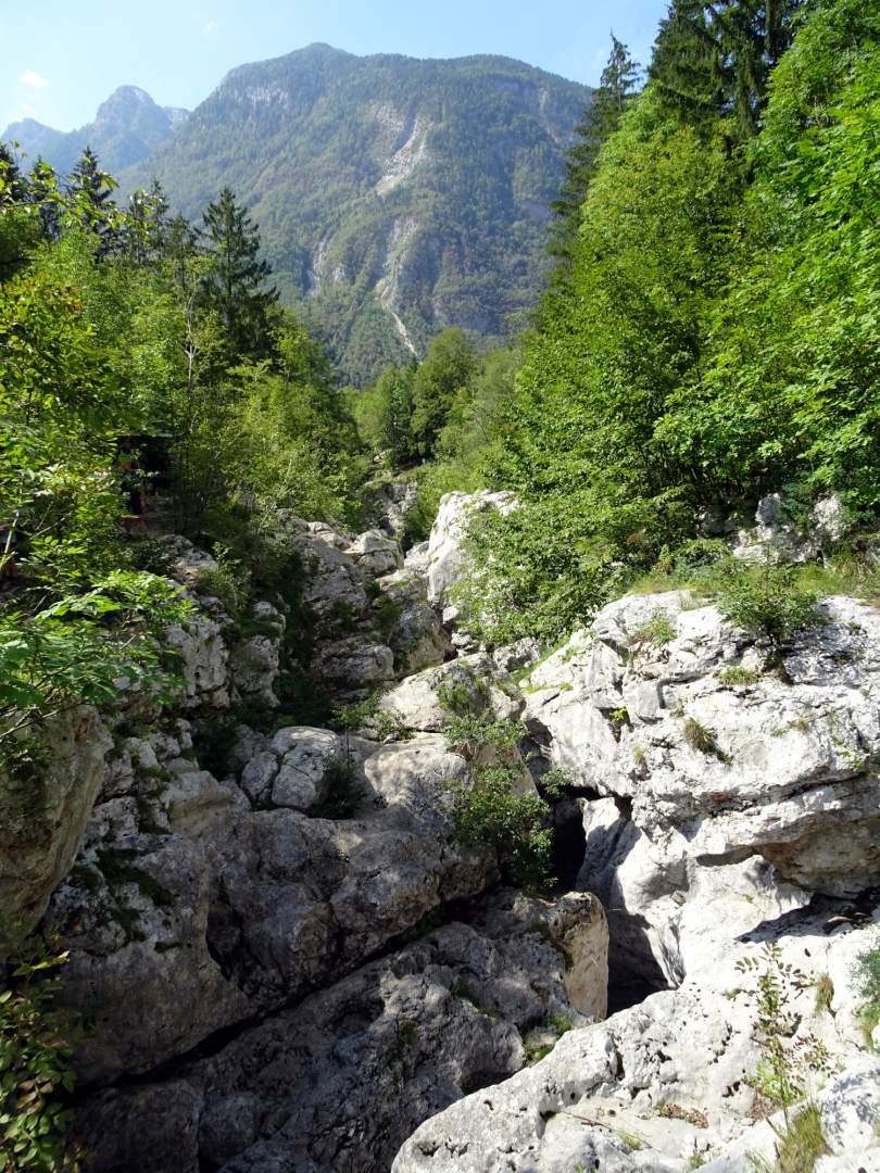 El sitio donde hemos hecho esta caminata también está en la lista de las 10 mejores cosas que hacer en Eslovenia, entonces (después de la experiencia con la catarata de ayer) mi papi iba preparado para pagar aparcamiento, entradas pero nada de esto: aparcar gratuitamente y nada de taquillas. La Valle del Soca (con una V sobre la C, pero no sé escribirlo, mira cómo me sale: Soča) es un pequeño río con un sendero (Soška pot) y por supuesto hemos hecho una buena parte del total de 25 kilómetros (y luego había que volver). En algunas partes la gente, mucha gente, se estaba bañando en el río que a mí me parecía súper frío. Mi papi vino mal preparado, no llevaba su bañador pero hasta dos veces encontramos un sitio donde no había otras personas y se echó en el agua, en pelotas.