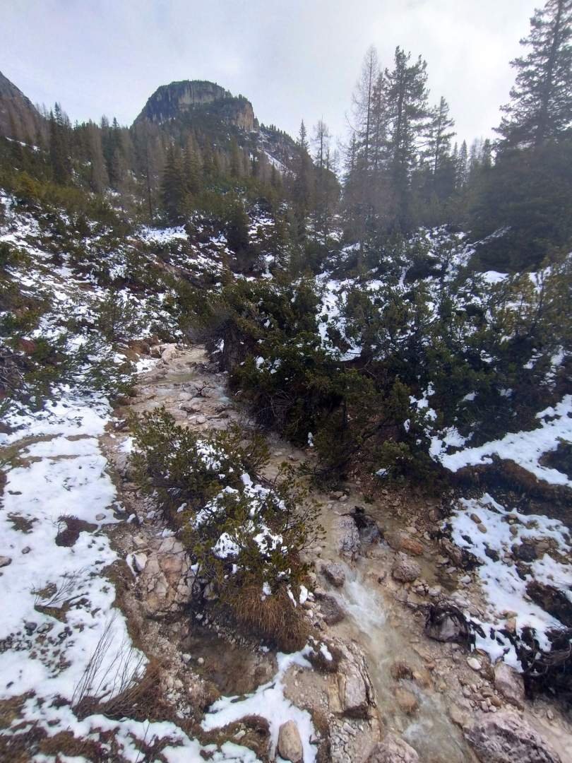 Con nuevas energías y ganas bajamos al aparcamiento, que fue mucho más rápido que la subida. Allí cogimos el coche y fuimos a otro aparcamiento en el Passo Tre Croci. Los tres croquis también estaban invisibles, pero allí hicimos nuestro descanso de mediodía. El tiempo no mejoró nada, entonces después de la siesta solo vinimos al sitio donde estamos ahora y donde vamos a dormir, y vaya sitio bonito que es. Salvo el ruido del río no se escucha nada, y además no se ve nada porque aquí la oscuridad es absoluta. ¡Huuuuuu!