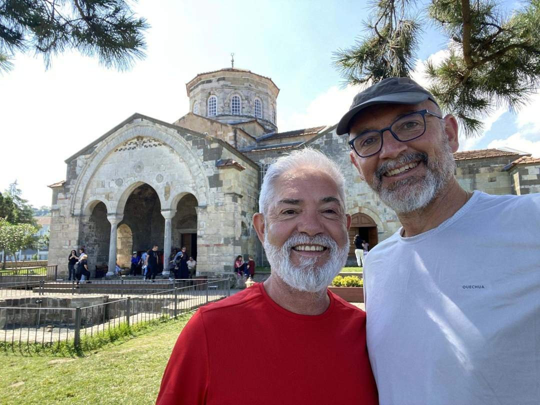 Tras la rutina matinal nos montamos en el cacharro de mi papi y pusimos rumbo a la ciudad de Trabzon. Antes de llegar al centro nos hicimos una paradita en una mezquita un tanto peculiar, que parecía mezcla de mezquita e iglesia ortodoxa. ¡La cosa se llama Santa Sofía, ojo al dato! Había un montón de humanos por allí, y la explicación es sencilla - merece la pena verla. Era una monada, con perdón de la expresión.