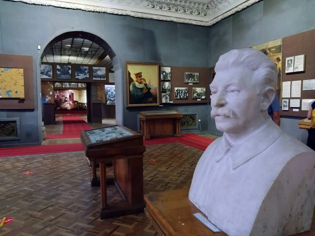 Después de salir de nuestro "camping" en las afueras de Gori fuimos al centro de aquella ciudad. Resultó que Gori es la ciudad natal de Stalin y al lado de su casa natal han puesto un museo, o casi un santuario. Y la casa natal se ha convertido en un tipo de templo. Se ve que en esta ciudad todavía adoran al dictador soviético. Mientras mi papi y mi Tito Joan visitaban el museo yo me quede en la camper, como ya es costumbre. Pero sí podía acompañarles en un paseo por la ciudad de Gori que hicimos después. Vimos un grupo de estatuas de un tipo de templarios, una iglesia ortodoxa y, desde abajo, también vimos un castillo pero no subimos.