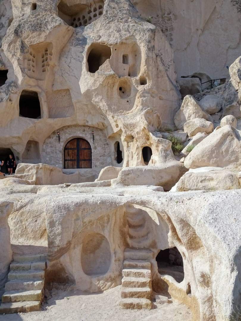 Por la tarde nos dirigimos al "Castillo de Uçhisar", que es como una torre de vigilancia gigante tallada en la roca. Pero aquí decidí que los juegos de tronos no eran lo mio y dejé que los humanos subieran mientras yo cuidaba la cámper (y mis chuches).