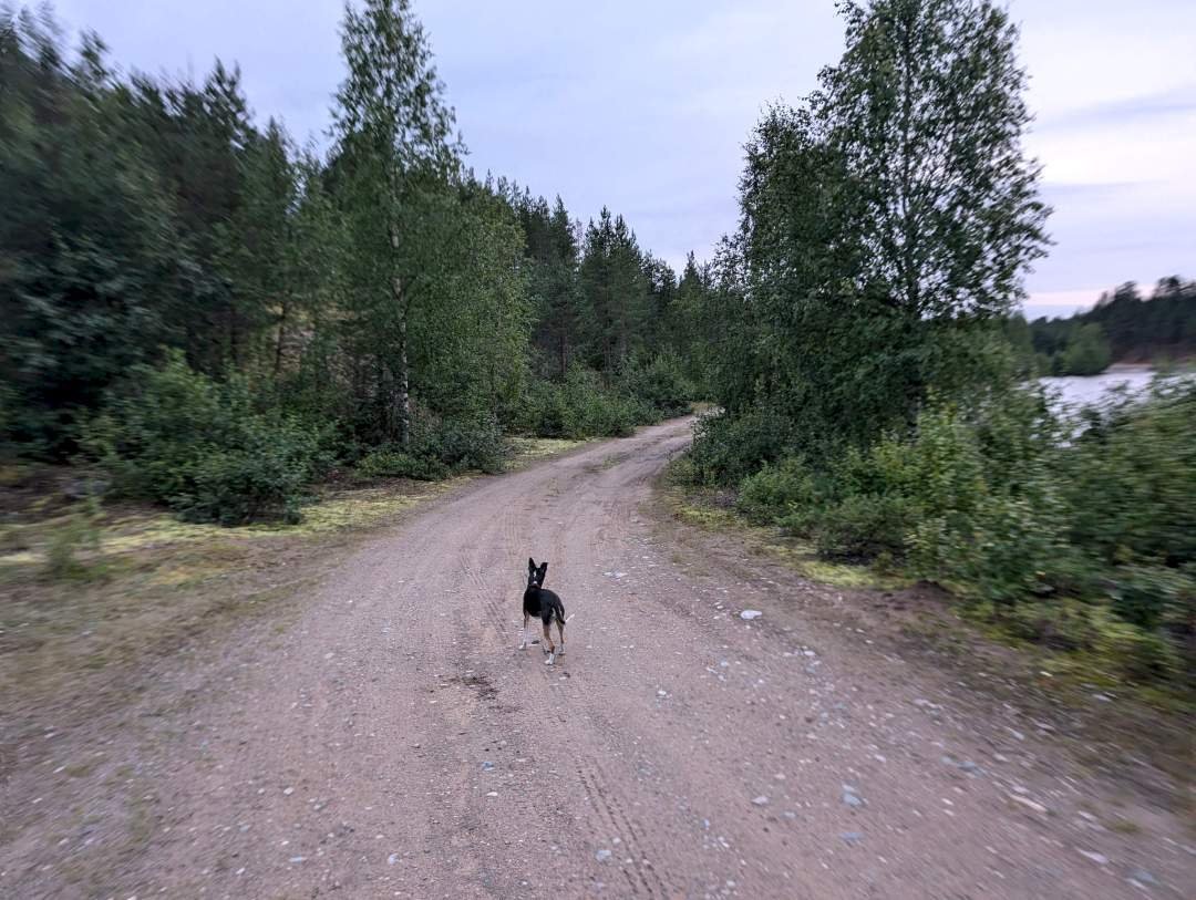 Encontramos un sitio perfecto para dormir: un aparcamiento enorme junto al Kemijoki, un río tan ancho que parece que Finlandia se parte en dos. Ni un solo coche, ni una autocaravana, ni un alma. Solo nosotros y el rumor del agua. Papi dice que es un sitio tranquilo. Yo digo que es un paraíso.