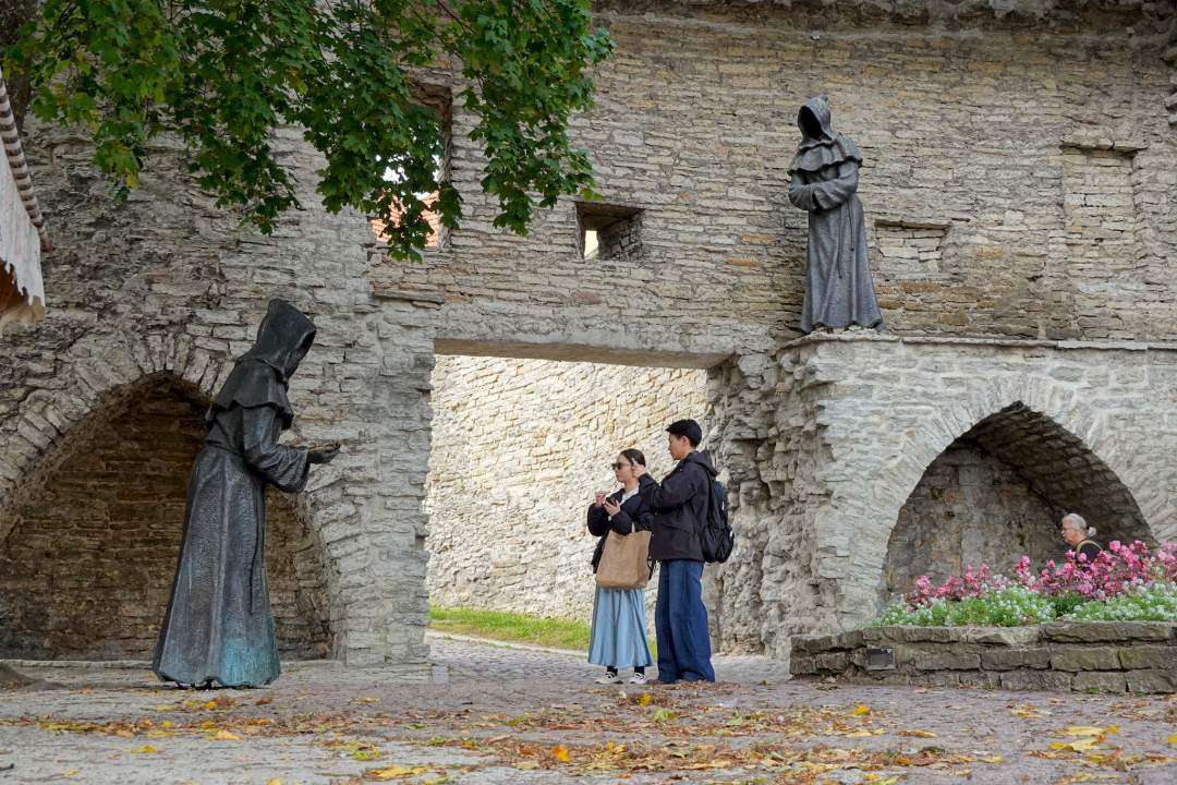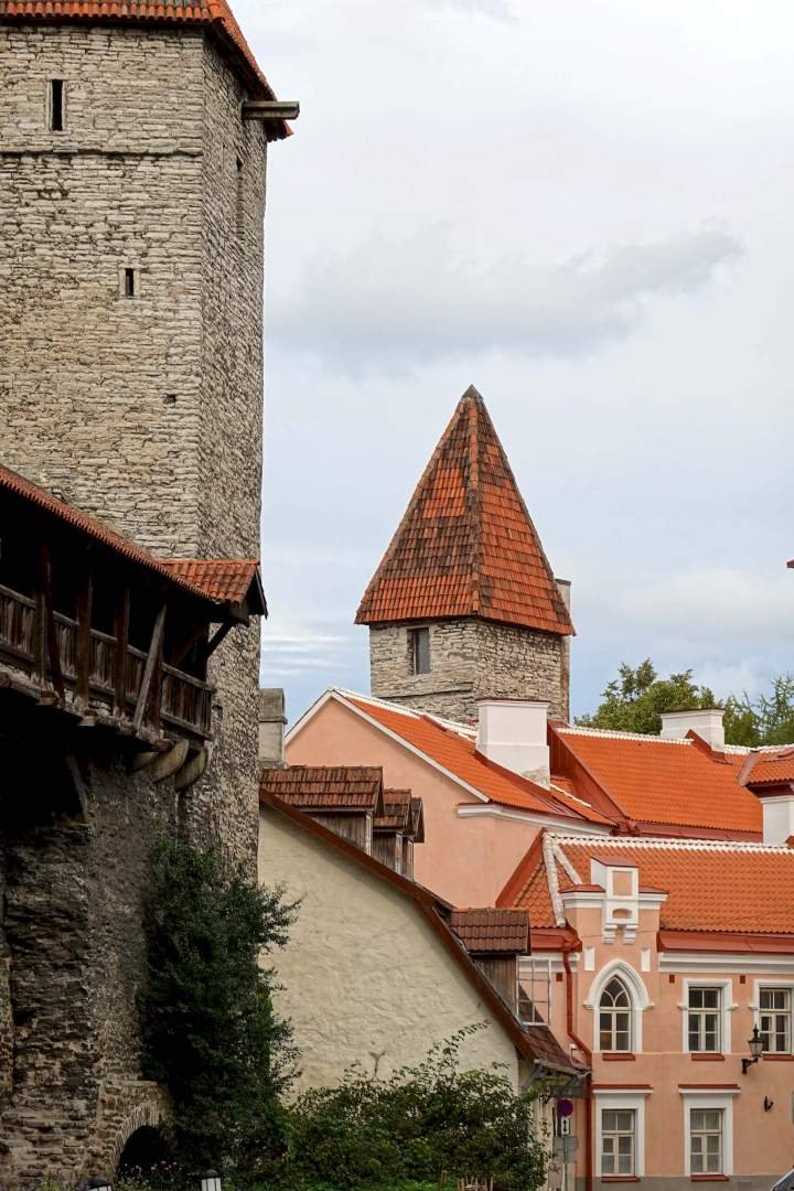 Recorrimos todo lo que hay que ver: la muralla con sus torres, la plaza del ayuntamiento (Raekoja plats), la colina de Toompea, la catedral ortodoxa de Alexander Nevsky, la iglesia de San Olaf (¡altísima!), el pasaje de Santa Catalina (Katariina käik), el mirador con las mejores vistas, calles empedradas, puertas medievales, dragones tallados, casitas de colores... vamos, lo típico que hace que Tallinn parezca un cuento.