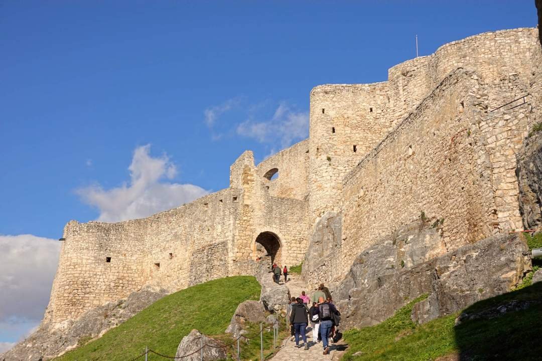 La siguiente parada fue el impresionante castillo de Spis, uno de los más grandes de Europa Central y declarado Patrimonio de la Humanidad por la UNESCO. Desde abajo ya impone con sus murallas y su ubicación estratégica en una colina. Subimos un poco para admirarlo más de cerca, pero no entramos porque habíamos leído que por dentro no es tan emocionante como parece. Eso sí, desde la colina las vistas son de campeonato. Yo ya me veía como el rey de estas tierras, ladrando órdenes desde lo alto.