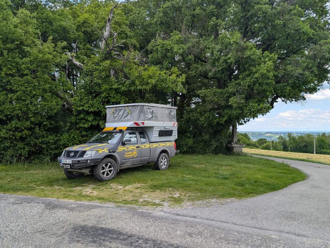 Después de un par de horas de descanso y estética, retomamos la ruta. Al llegar a Hauterives, aparcamos justo donde dice que no se puede aparcar autocaravanas. Pero nuestra cámper, como bien sabéis, no es una autocaravana. Es una camioneta con alma libre y corazón de garaje. Total, no se parece ni de lejos a una de esas ballenas blancas.