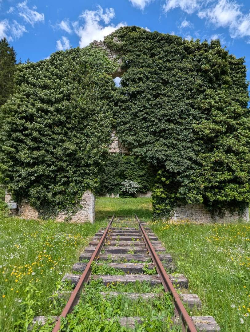 A eso de las diez y media arrancamos el coche y pusimos rumbo al noroeste. Por carreteras departamentales, sin prisas. Cruce por aquí, curva por allá, olor a queso en algún tramo… lo típico. La idea era llegar a un sitio llamado Nantua. Pero justo antes de llegar, pasamos por una cosa que nos hizo abrir bien los ojos: Les Glacières de Sylans. A mí la palabra “glaciar” me suena a nieve, frío y patitas mojadas, pero resultó ser otra cosa: un edificio gigante medio en ruinas, al pie de una montaña, donde antes guardaban hielo natural. Hace más de 100 años, sacaban bloques de hielo del lago Sylans en invierno y los metían ahí, como si fueran lingotes de oro frío. Luego los enviaban por tren a Lyon, París e incluso hasta África. ¡Hielo africano con denominación de origen francesa! No me digáis que los humanos no sois raros.