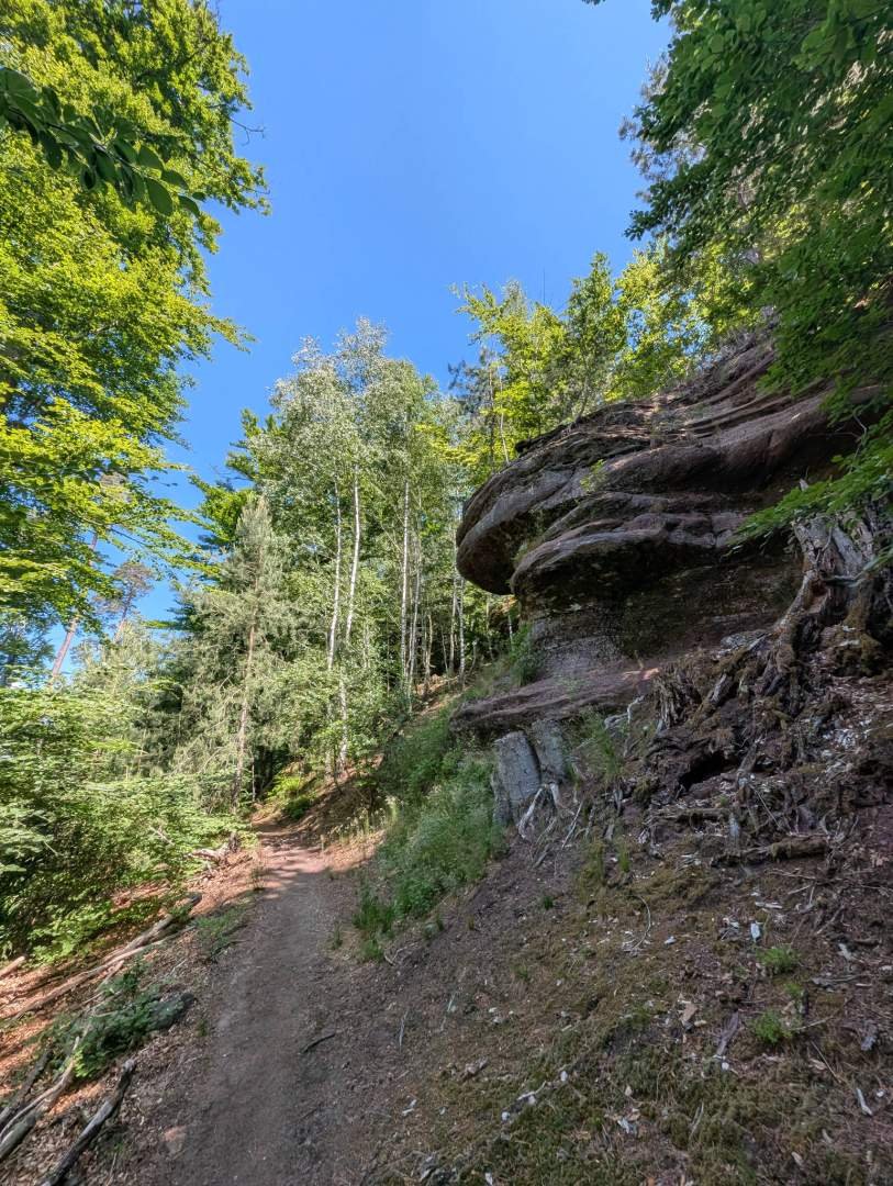 Pero lo mejor del día fue el paseo: el Sendero de las Tres Rocas.Primero llegamos a la Roca del Cuervo (Rocher du Corbeau), que nos saludó desde lo alto con unas vistas de locura. Luego atravesamos bosques frondosos hasta topar con la Roca de los Paganos (Rocher des Païens), que tiene nombre de misterio antiguo y formas tan raras que hasta me puse serio. Y al final, la guinda: la Roca Blanca (Rocher Blanc), luminosa, elegante, y con un sitio perfecto para sentarse y comerse una golosina, que es justo lo que hice.