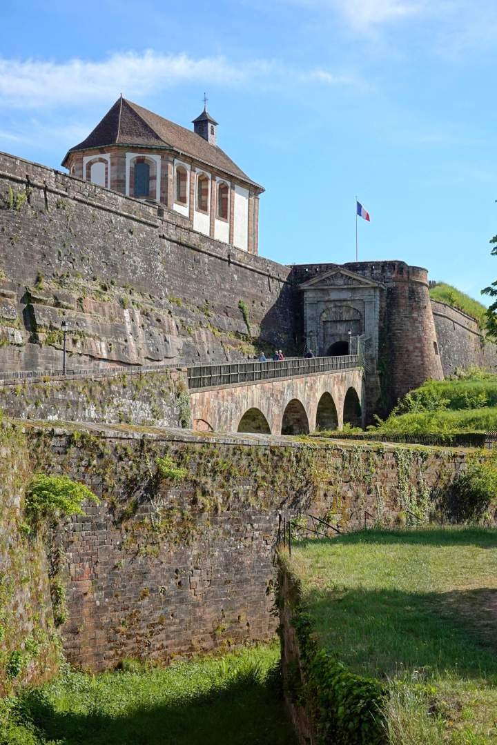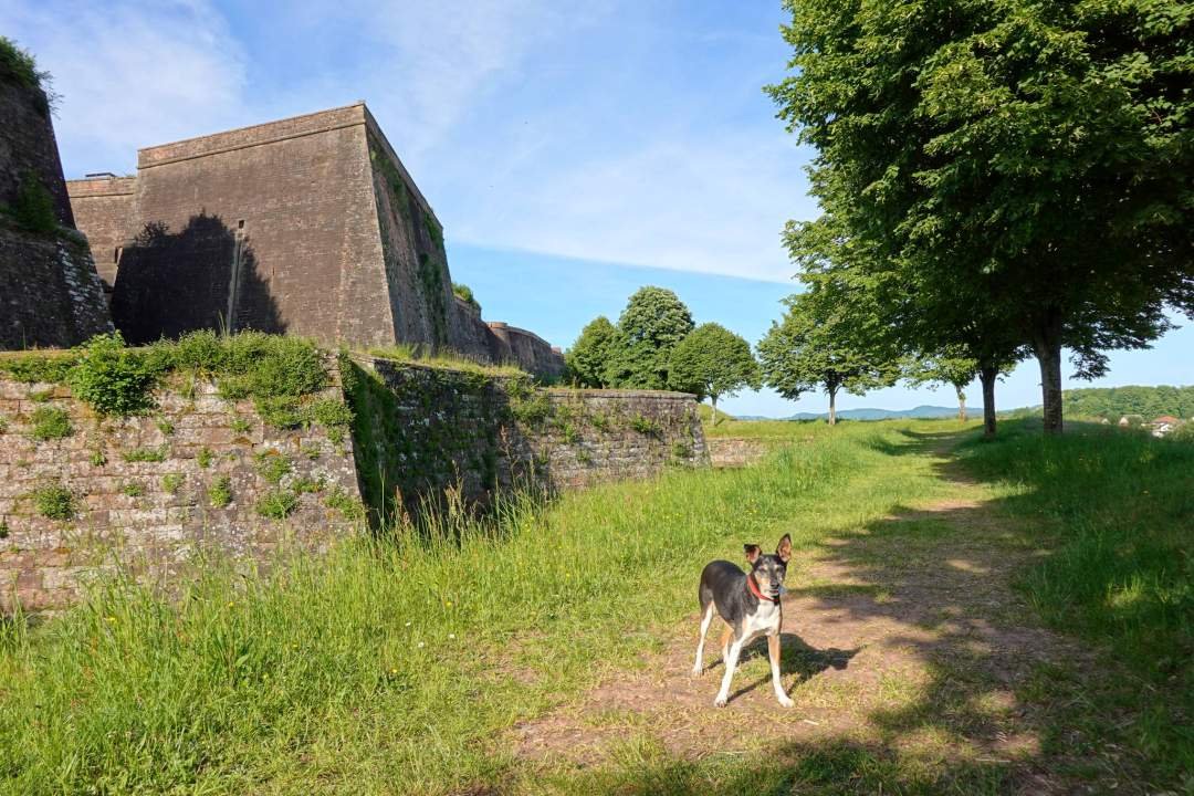 Después seguimos hacia Bitche. No es broma. Se llama así. Aparcamos justo debajo de su fortaleza, y vaya fortaleza. Es como un castillo con gimnasio: enorme, robusta, imponente. Estaba cerrada, pero pudimos rodearla por un camino precioso. Vistas espectaculares y un silencio que daba gusto. Todo tranquilo, sin apenas humanos.