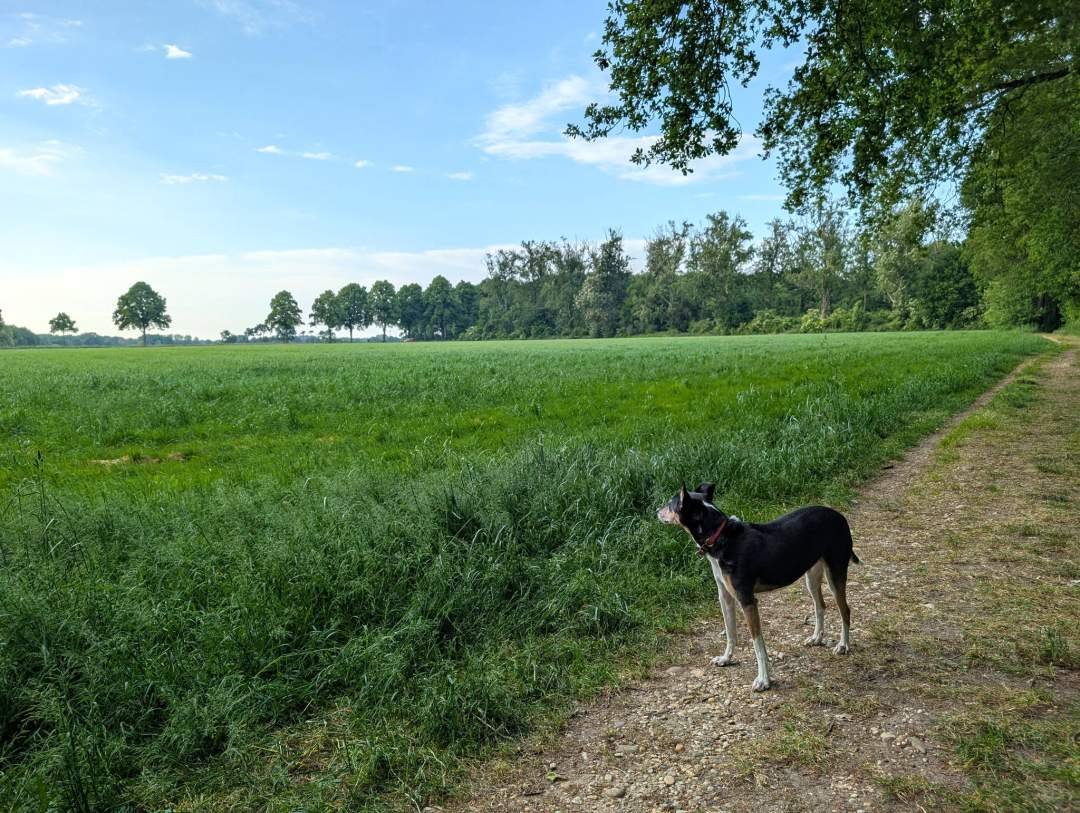 Antes de refugiarnos, dimos un paseíto por el bosque y los campos. El paisaje ya empieza a parecerse mucho a Holanda: plano, verde y con más cielo que montañas. Pero aquí no hay ciclistas con cascos de colores ni caravanas de turistas. Solo nosotros, los pájaros y un montón de silencio.
