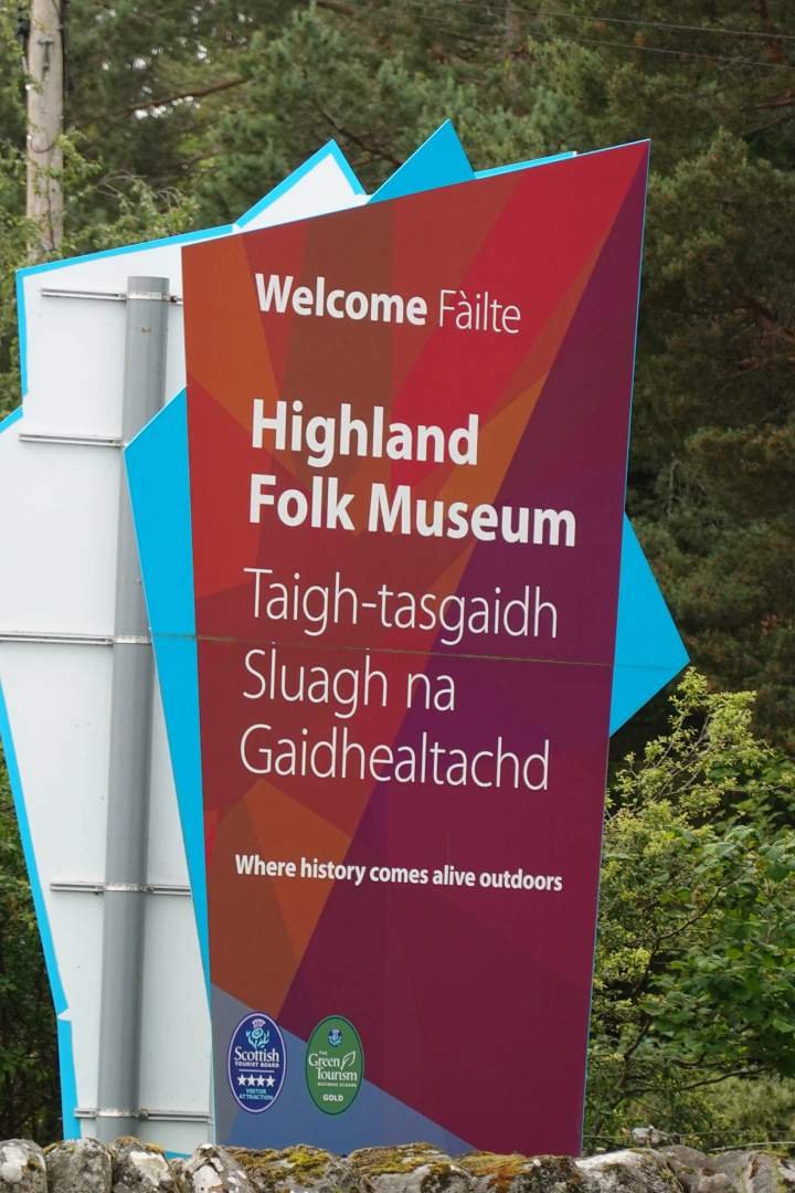 Después de una horita de coche, justo al pasar por Newtonmore, vimos un cartel marrón que decía Highland Folk Museum. Papi Edu frenó, giró y dijo: “Vamos a ver esto, tiene buena pinta”. Y tenía razón.