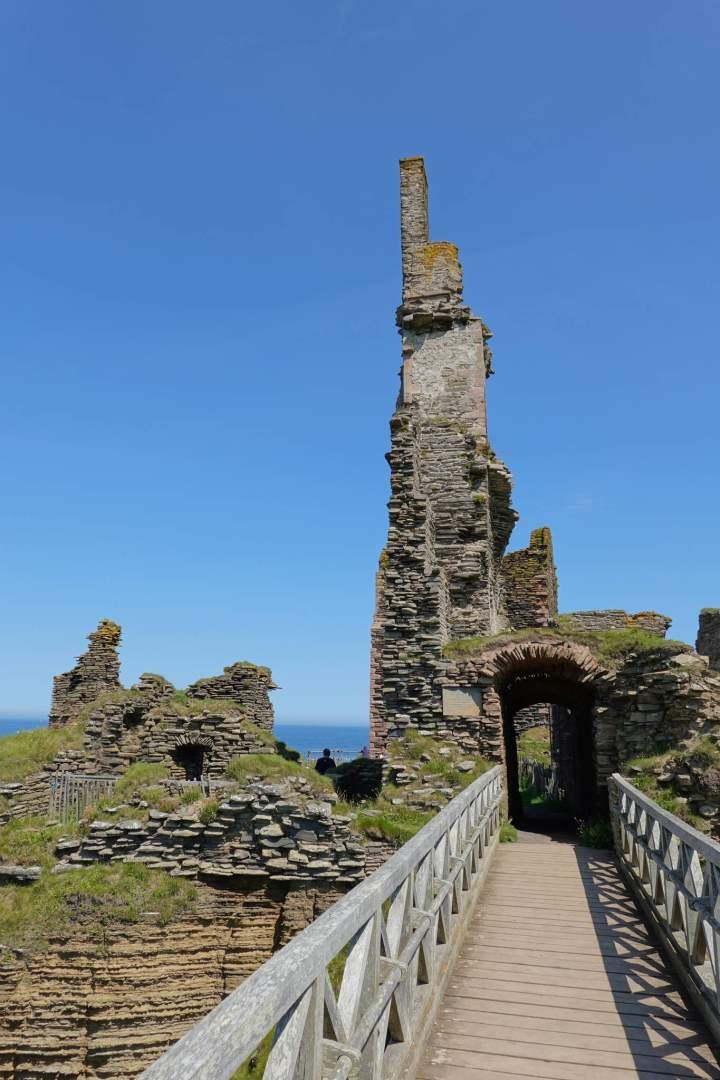 Sobre el mediodía, salimos. Primera parada: Lidl, para lo básico de la vida (y no, no compramos pienso, por suerte). Después seguimos hacia Noss Head, donde hay un aparcamiento junto a un caminito costero que lleva al castillo de Sinclair Girnigoe. El nombre parece una contraseña de wifi, pero en realidad es una ruina imponente colgada del acantilado. Dicen que es uno de los castillos más espectaculares de Escocia, porque combina historia y vistas de infarto. En sus buenos tiempos, fue un bastión de los Sinclair, con torres, salas y dramas familiares de los buenos. Hoy, queda lo justo para dejar volar la imaginación, con el mar como telón de fondo y el viento despeinándote los pensamientos.