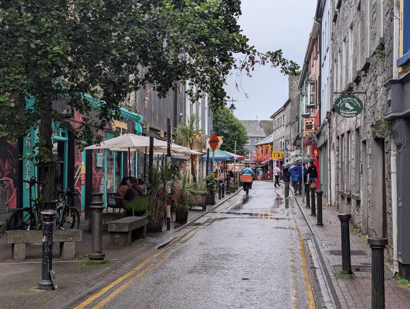 Desde allí, tiramos para Galway, que nos recibió con nubes cargadas y otro apartamento nuevo. Este no tiene escaleras, pero hay sofás blanditos y un váter que ya estaba planeando su rebelión silenciosa. Nos organizamos, descansamos un poco y, cuando se activaron los humanos otra vez, salimos en coche hacia el centro.