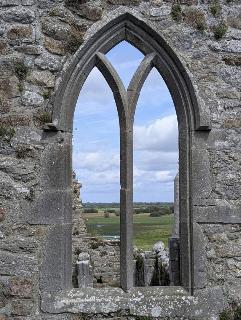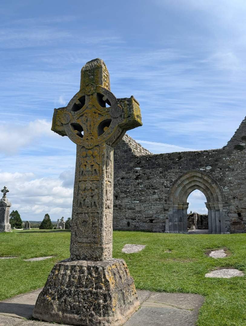 Luego coche —¡cómo no!— rumbo a Clonmacnoise, un lugar con nombre de conjuro mágico, pero que en realidad es un antiguo monasterio fundado en el siglo VI. Y qué lugar, oye. Unas ruinas espectaculares con cruces celtas gigantes, iglesias sin techo y torres redondas donde seguro vivían los fantasmas con eco. Lo mejor: a mí me dejaron pasar. Me porté como un monje ejemplar, oliendo todo sin hacer ruido y sin marcar ninguna tumba, que conste. Eso sí, había mucha gente. Parecía que habían puesto cerveza gratis detrás de una piedra sagrada.