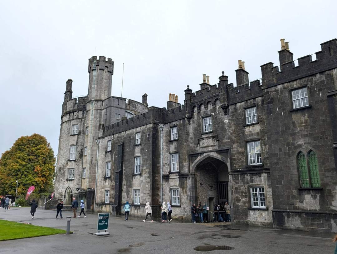 La noche fue tan tranquila que ni un murciélago bostezó. Por la mañana chispeó un poco, esas gotitas que parecen que no mojan pero te dejan oliendo a perro recién lavado. Cuando por fin se despejó, arrancamos motores. ¡Kilkenny nos esperaba! Aunque estábamos al lado, tardamos media hora en encontrar aparcamiento porque papi Edu quería dejar la cámper pegadita al castillo. Y claro, había algún evento deportivo y todo el barrio estaba lleno de coches de humanos que huelen a sudor y adrenalina.