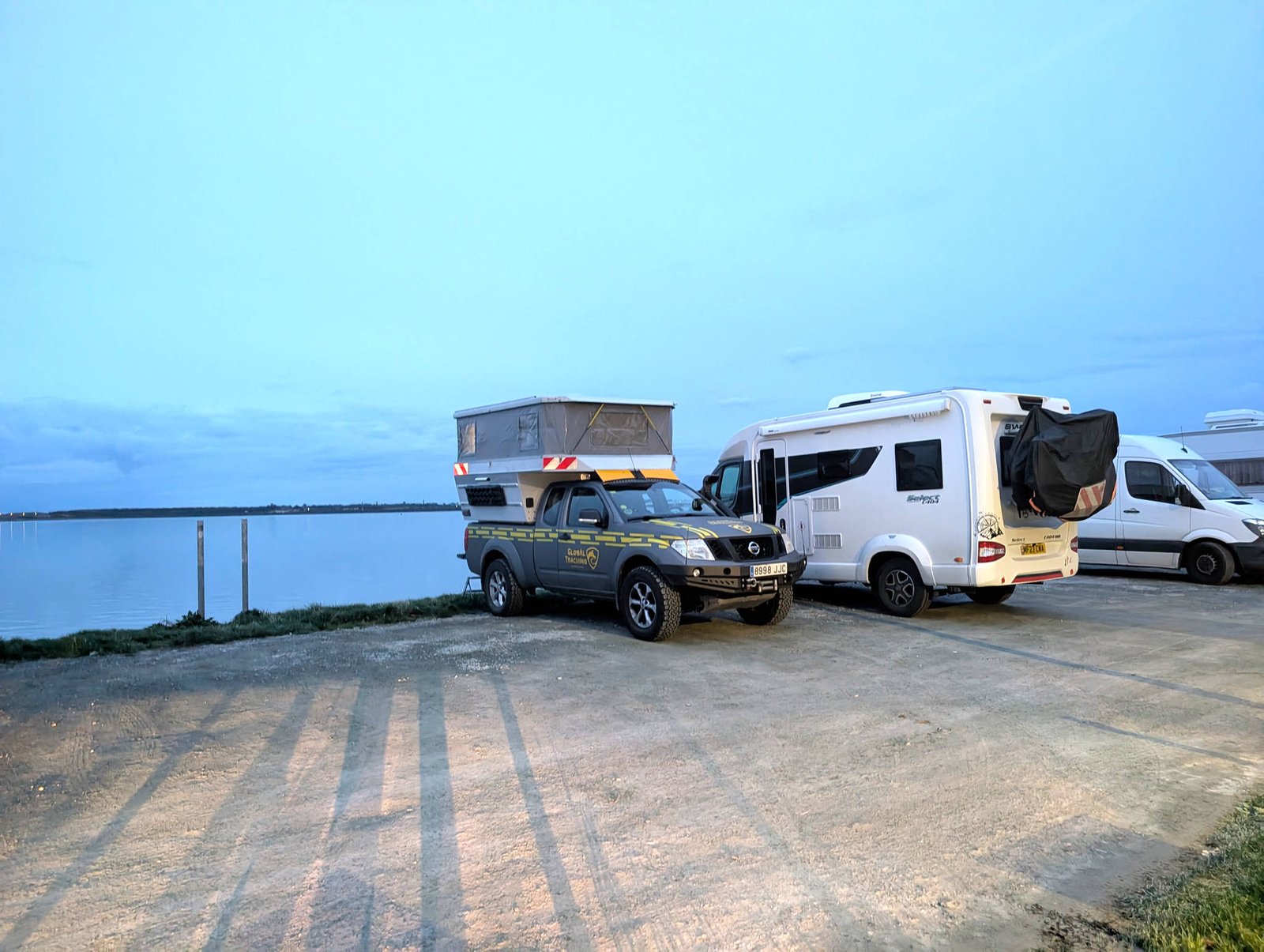 Y así fue. Conducimos hacia un lugar que ya es casi casa: el aparcamiento junto al estuario de Malahide. Allí hemos dormido varias veces y cada vez se siente como reencontrar a un viejo amigo. El viento ya no sopla con furia, solo murmura bajito entre las hierbas. Hay unas cinco cámpers y autocaravanas más, discretamente alineadas mirando al agua. Aparcamos, nos instalamos y respiramos aliviados. El día ha sido largo, con lagos de cerveza, parques infinitos, cafés gratis y despedidas.