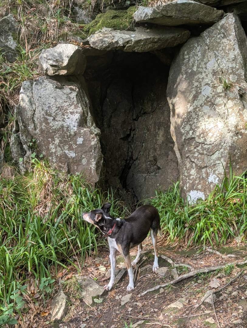 Más tarde paramos en un aparcamiento al lado de la carretera, en Glen of the Downs. Allí se siente el aire fresco de la montaña mezclado con el aroma a hierba y tierra mojada. Comimos en la cámper y luego dimos un paseo por el parque natural Glen of the Downs Nature Trail. No hay mucho que ver, salvo una ruina curiosa llamada The Octagon, un edificio del siglo dieciocho que servía como pabellón de caza y mirador. Hoy parece una cabeza hueca entre los árboles, pero me entretuve olfateando cada rincón y marcando mi propio territorio sobre piedras y raíces.