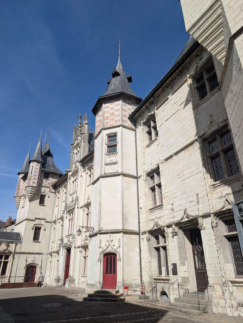 El centro de Saumur nos recibió con sol, silencio y tiendas cerradas por culpa de esa costumbre francesa de comerse el mediodía con siesta incluida. Paseamos por calles peatonales bonitas y tranquilas, y cruzamos el famoso puente sobre el Loira, el Pont Cessart, que lleva siglos viendo barcos, guerras y perros curiosos como yo. Luego vimos el teatro, fachadas elegantes y plazas sin ruido, como si todo el mundo se hubiese escondido detrás de un croissant.