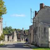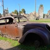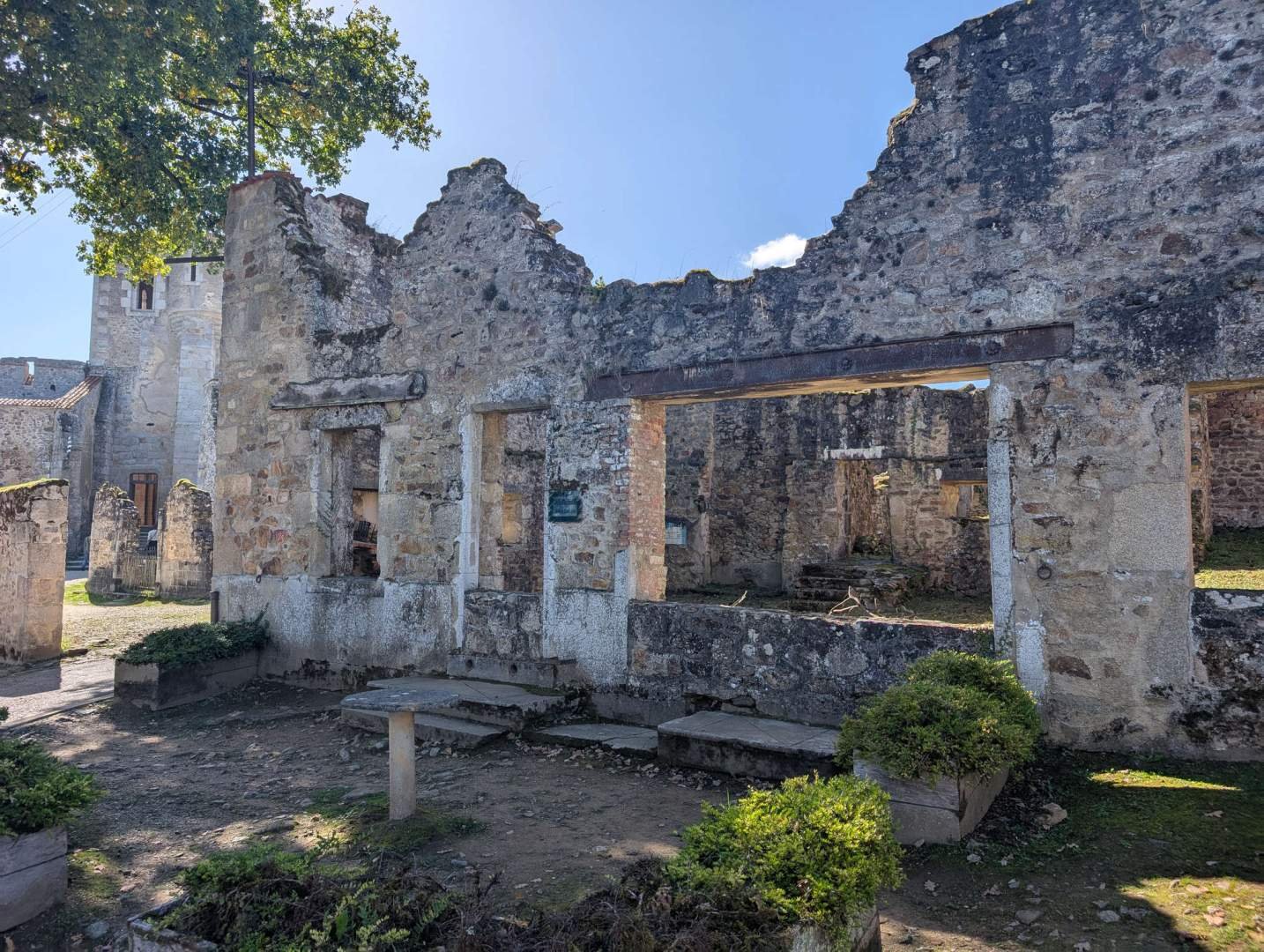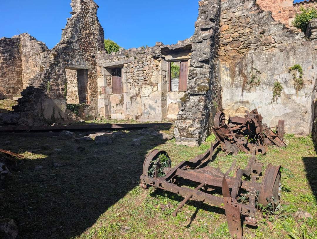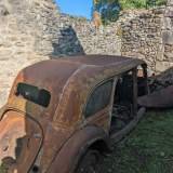 Nuestro destino del día sonaba solemne: Oradour-sur-Glane. Si no lo conocéis, es un pueblo tristemente famoso porque fue destruido por los nazis en 1944. Más de seiscientas personas murieron, y el pueblo quedó tal como estaba aquel día, como testigo mudo de la barbarie. Hoy es un lugar de memoria, un sitio donde las ruinas cuentan lo que los libros apenas pueden decir.