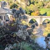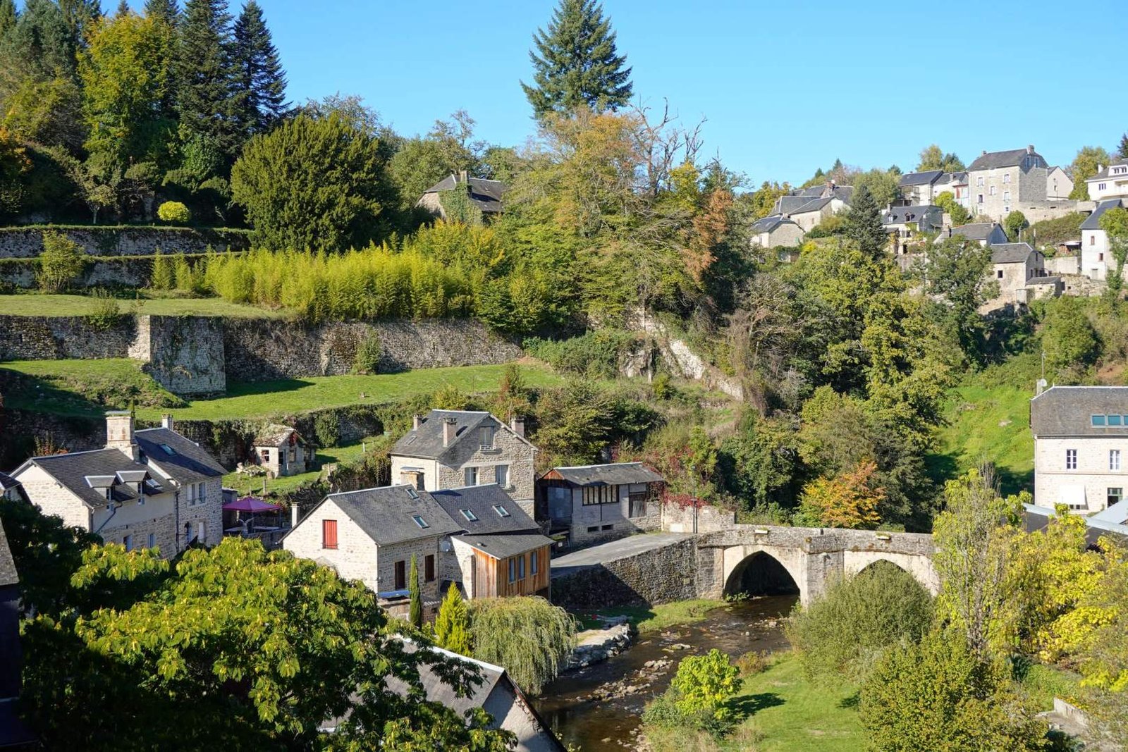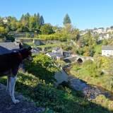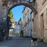 Treinta minutos más de curvas y aterrizamos en Treignac. Domingo. Pueblo en modo siesta espiritual. Podías ladrar una ópera y no salía nadie a mirar. Bajamos a ver el río Vézère, que serpentea como si tuviera prisa por escapar del aburrimiento. Solo cruzamos el puente medieval, el pont Finot, ese que lleva ahí desde que los caballeros iban en caballo y los perros tenían títulos nobiliarios. El puente moderno, el pont de la brasserie, lo vimos y lo pasamos por debajo, sin glamour pero con sombra.