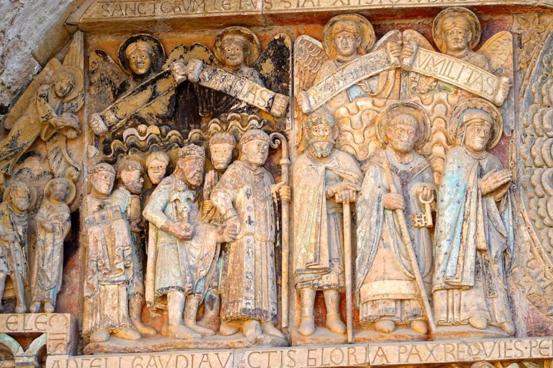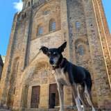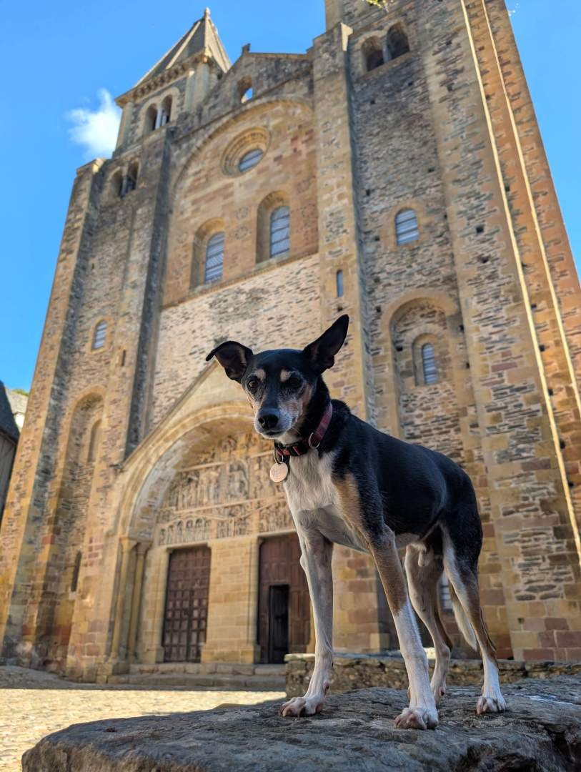 La iglesia abacial de Sainte-Foy domina el centro del pueblo con pinta de “llevo aquí mil años y pienso seguir otros mil”. Papi quería entrar sí o sí. Me dejó en la puerta, sentado como un santo de mármol, y yo puse cara de perro responsable para que todos pensaran: “Mira qué educado”. Por dentro, seguro que olía a incienso, piedra fría y siglos de secretos, pero yo me quedé fuera oliendo culos de peregrinos y observando si alguien soltaba migas.