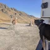 Y entonces, el espectáculo. Alrededor de la cámper, como si alguien hubiera abierto un portal andino, aparecieron llamas. ¡Sí, llamas! Pero no las que queman, sino las que rumian. Grandes, pequeñas, lanudas, elegantes. Una incluso me dedicó un escupitajo de cortesía. Respondí con un ladrido amistoso; no es fácil mantener la diplomacia intercontinental.