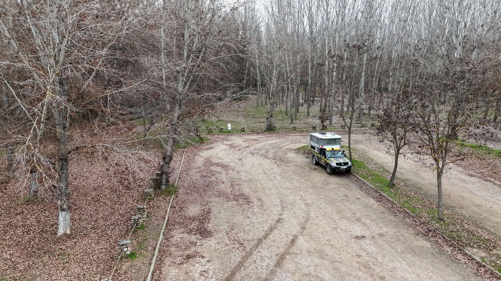 De vuelta al coche, bajamos a la autovía A-2 y paramos en un merendero para comer en la cámper, que ya tocaba. Luego nos metimos un buen tramo de carretera, casi dos horas. Pasamos por Guadalajara capital sin parar, decisión rápida y consensuada, y terminamos en Talamanca de Jarama. Allí hay un área recreativa enorme, con un aparcamiento de tierra, al lado del puente romano que cruza el río. Llegamos ya de noche. El sitio es tranquilo, amplio, con historia bajo las patas y silencio alrededor. Aquí nos quedamos a dormir, que mañana el mundo puede esperar un poco más.