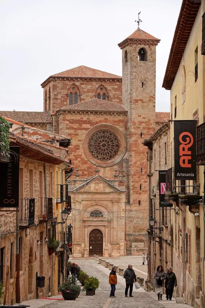Pasamos después por la catedral, la Catedral de Santa María de Sigüenza. No pudimos entrar porque estaba cerrada, pero por fuera impone lo suyo, una mezcla de fortaleza y templo que ya te dice que aquí la fe iba bien acompañada de muros gordos. Desde allí seguimos por un camino con vistas al valle y a los pinares, muy bonito, hasta subir al castillo. También lo vimos solo por fuera, pero no pasa nada, porque saber que hoy en día es un Parador ya te explica por qué está tan bien conservado. Antes fue fortaleza medieval, luego residencia episcopal, ahora hotel con almohadas mullidas. Las piedras se adaptan mejor que muchos humanos.