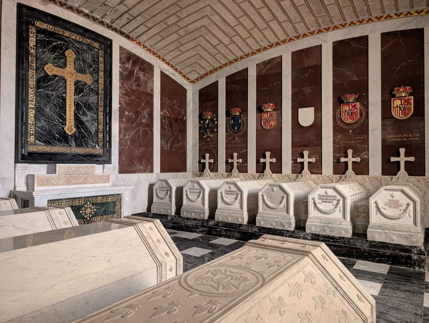 También se había comprado una audioguía por tres euros, de esas modernas que van con aplicación en el móvil. Spoiler: la aplicación no iba muy fina. A ratos hablaba, a ratos se quedaba pensando en sus cosas, como si también estuviera impresionada por el sitio. Dentro había muchísima gente y al principio no se podía ver la basílica porque había misa, así que Edu fue recorriendo salas, patios y pasillos interminables mientras escuchaba historias de reyes, monjes y decisiones muy serias.