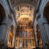 El Real Monasterio de San Lorenzo de El Escorial es enorme, mandado construir por Felipe II en el siglo XVI, mitad monasterio, mitad palacio, mitad panteón real y mitad biblioteca, que ya van muchas mitades para un solo edificio. Todo es gigantesco, muy ordenado, muy de piedra y bastante austero, nada de florituras. Aquí se viene a imponer respeto y a caminar mucho.