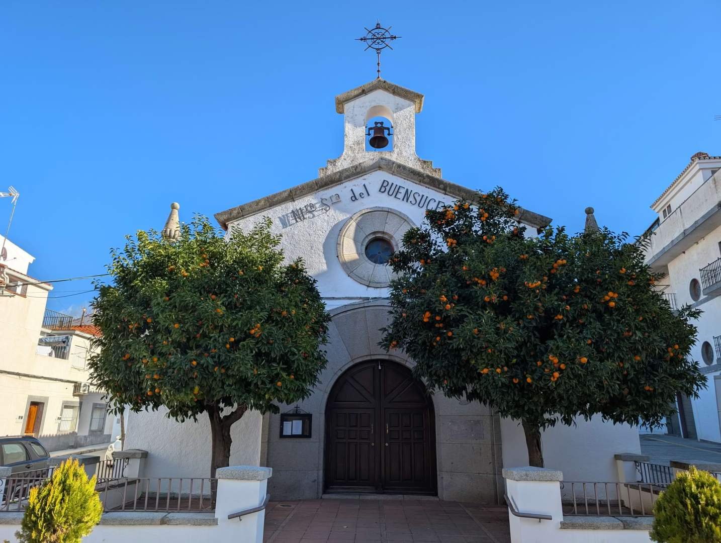 Seguimos rumbo sur. Tras unos tres cuartos de hora pasamos por Castuera. Ya habíamos estado allí hace casi diez años, cuando yo tenía cuatro meses y todo me parecía enorme. Además, es el pueblo de papi Carlos, mi "otro papi". Hoy, día de Reyes, el ambiente estaba más aburrido que una pelota pinchada. Hicimos unas fotos rápidas a la iglesia, la plaza del ayuntamiento y una ermita, y seguimos camino.