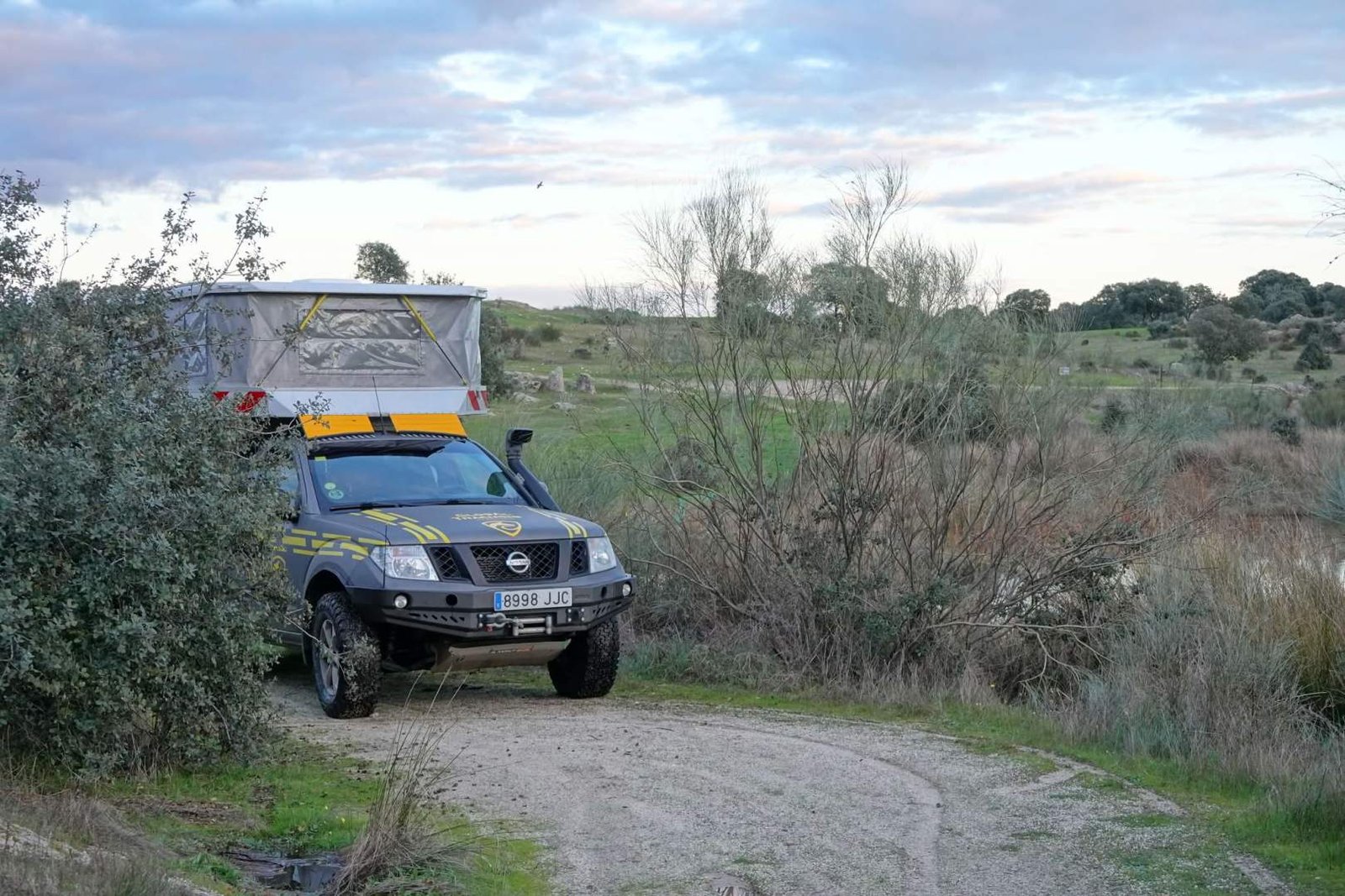 Volvimos a la cámper con sensación de día bien mascado y en menos de media hora llegamos al pantano de Proserpina. Hay varios puntos marcados en Park4night y algunas cámper ya colocadas, pero seguimos hasta el final del camino y encontramos un sitio aún mejor. No estaba en Park4night, era más tranquilo, con mejores vistas y mucha intimidad. Como esos huesos buenos que nadie ha descubierto todavía.
