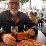 Volvimos a la cámper y pusimos rumbo a Mérida. Unos veinticinco minutos y ya estábamos aparcados gratis, que era domingo, en una calle junto al río Guadiana. Desde allí fuimos andando hasta la Plaza de España, el centro del centro. Terraza, sol, ambiente y comida. Mucho jamón, pero no para mí. Tema sensible. Pasamos página.