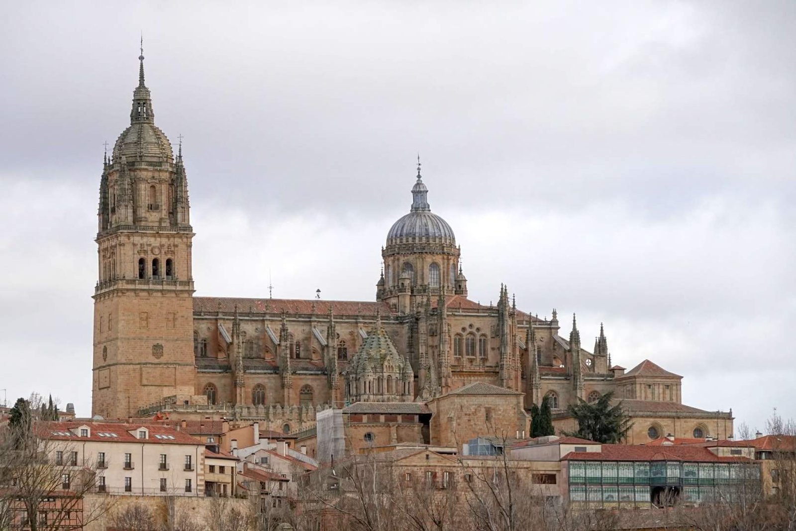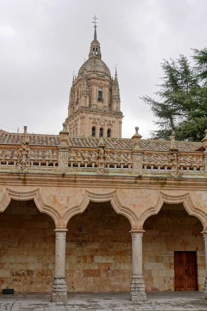 Salamanca tiene dos catedrales pegadas una a la otra. La Vieja es románica, más bajita y recogida. La Nueva es enorme, gótica y renacentista, de las que te hacen levantar la cabeza hasta que te cruje el cuello. Los humanos siempre buscan el famoso astronauta en la fachada, yo busco palomas. Cada uno tiene sus aficiones.