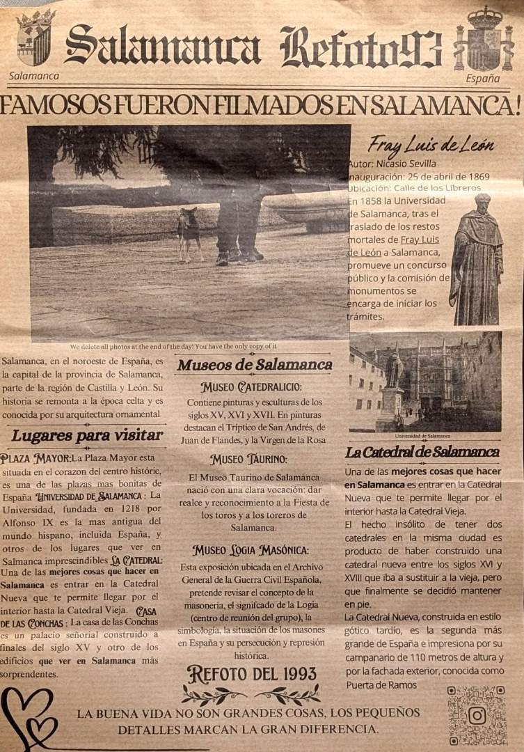 Habíamos quedado con dos amigos de Tito Joan, Carlos y Silvia, y allí nos encontramos. Carlos conoce Salamanca como yo conozco los arbustos de mi barrio, así que hoy tocó visita guiada de las buenas. Paseamos sin prisas, escuchando historias, detalles y anécdotas, y eso siempre hace que una ciudad te caiga mejor.