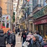 Con el estómago algo más contento, seguimos paseando por el centro y nos metimos por El Tubo, que es un laberinto de calles estrechas lleno de bares, gente, ruido y olores que te marean de felicidad. Un sitio muy animado, muy humano y muy peligroso para un perro con curiosidad profesional y el morro bajo. Yo iba leyendo el suelo como si fuera el periódico del día.