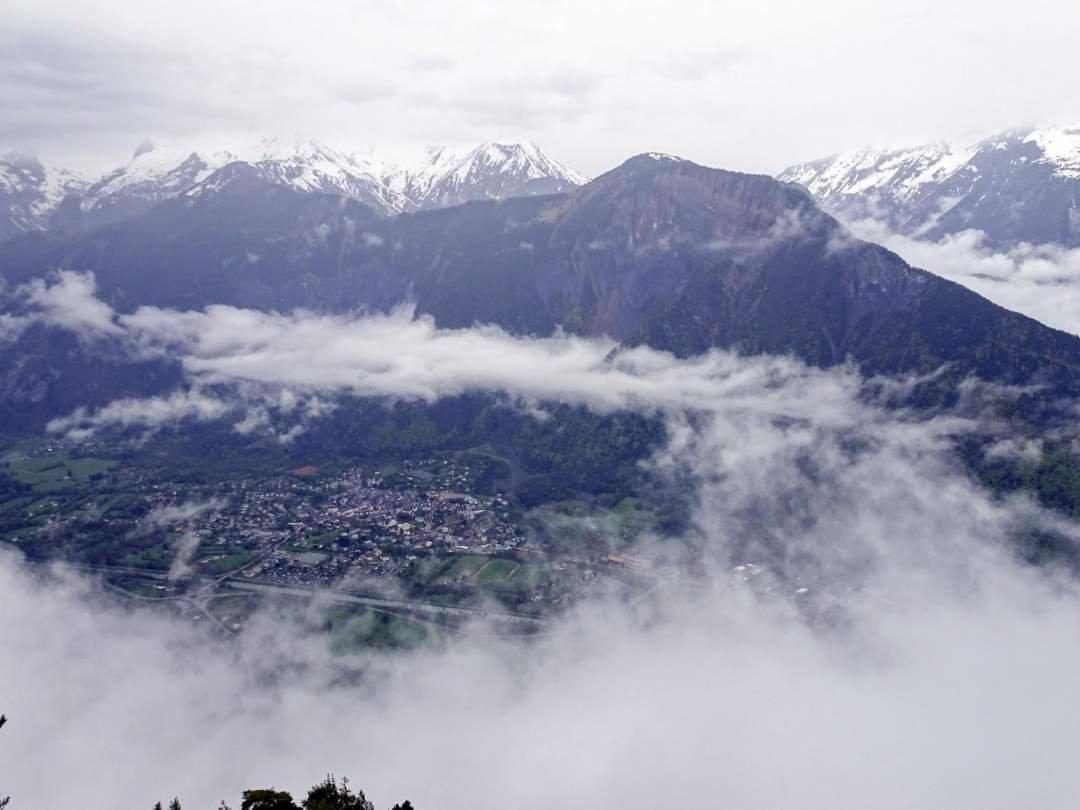 We hebben een tijd gegeten en geslapen naast een kabelbaan, de Alpe d'Huez Express, en toen we wakker werden was het weer een stuk beter geworden. Nu konden we goed van het uitzicht genieten.