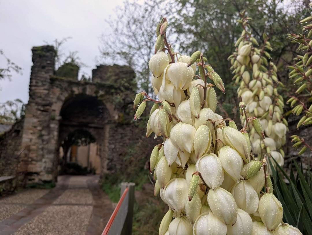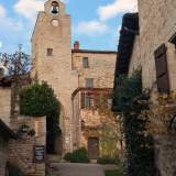Nadat we begonnen te lopen, besloot de regen een pauze in te lassen. Wonderlijk. Papi Edu zei "dit komt me allemaal bekend voor", en ik spande mijn rechteroor: aha, déjà vu. We volgden de drie straatjes die het middeleeuwse hart van het dorp vormen. We passeerden de Porte de la Pique, een van de oude poorten van de muur, die uit een sprookje lijkt te komen waarin de draak griep heeft. Daarna daalden we af naar de kerk van Saint-Jean l'Évangéliste, een gotische schoonheid uit de 13e eeuw met muren zo dik dat zelfs de wind en de tijd het niet durven te betwisten.