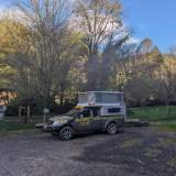 Buiten de gereguleerde zone zijn er leuke plekken om te parkeren, te eten of te slapen, maar daar is geen telefoonbereik. Dus reden we een stukje verder en vonden we een geweldige plek net ten westen van het dorp. Het is geen camping, geen parkeerplaats met parkeermeters, maar een soort verlaten steengroeve, met een adembenemend uitzicht (en blaffen). Daar parkeerden we en aten we warm. Met een goede verbinding en alle mogelijke balkjes rust.