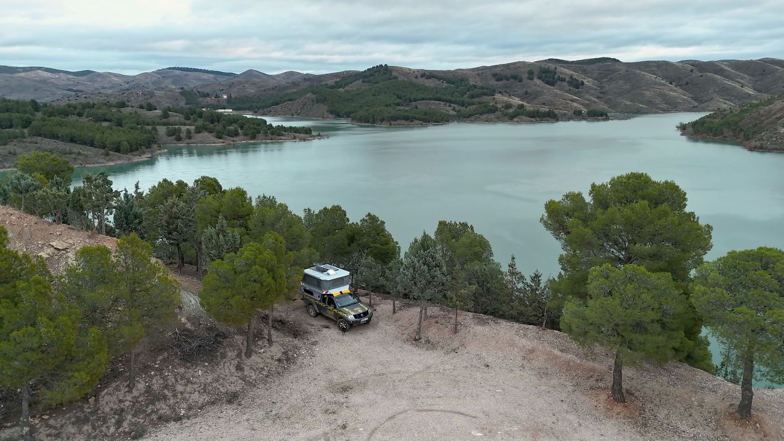 's Nachts vonden we een toffe plek om te slapen in de uitkijkpost van het stuwmeer van La Tancuera. We verstopten ons in een hoek tussen de bomen, goed beschermd tegen de wind, als goede dieren met een rijdend huis. Hier zijn we nu. Voor het slapen gingen we eten en dineren in de camper, warm en rustig, met de dag al verbruikt en het gevoel veel verschillende stukjes in één dag te hebben samengevoegd.