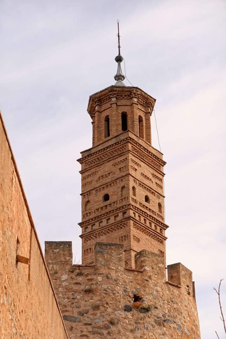 Tarazona is een kleine maar erg mooie stad, met die Italiaanse uitstraling die Edu zegt en die ik vertaal als smalle straatjes, gevels met karakter en veel interessante hoeken om aan te snuffelen. We wandelden en het eerste wat we zagen was de kathedraal van Santa María de la Huerta, een juweel dat gotiek en Mudéjar op een zeer elegante manier combineert. Het is een andere kathedraal, met veel baksteen, keramiek en details die je niet verwacht, en bovendien is hij in de stad ingeklemd alsof hij altijd al precies wist waar hij zich moest vestigen.